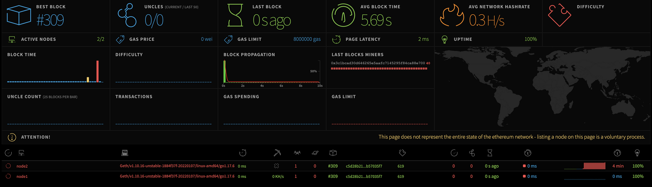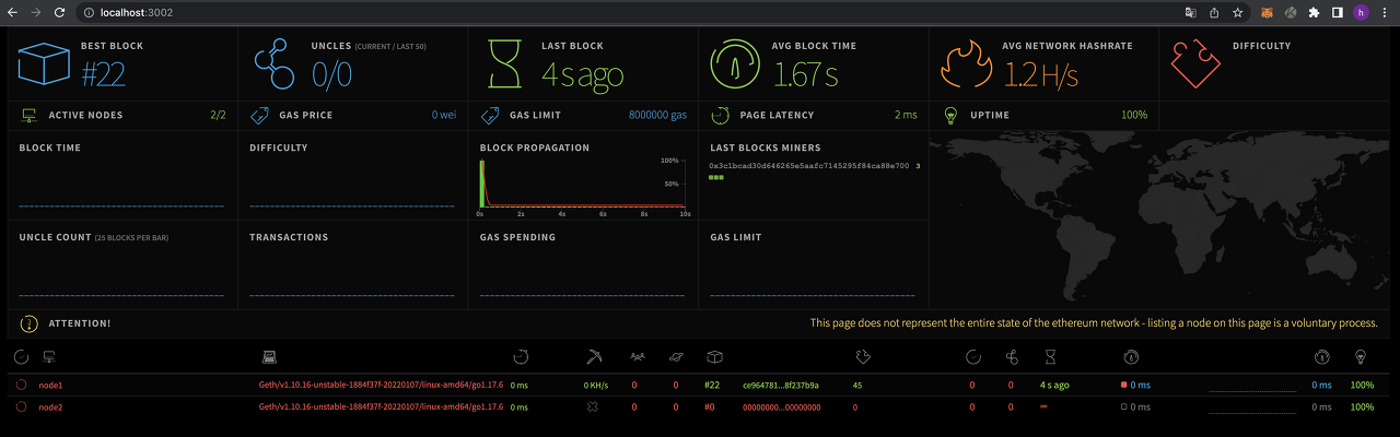 eth-netstats에 접속(http://localhost:3002)하여 노드 정보를 확인해 본다.