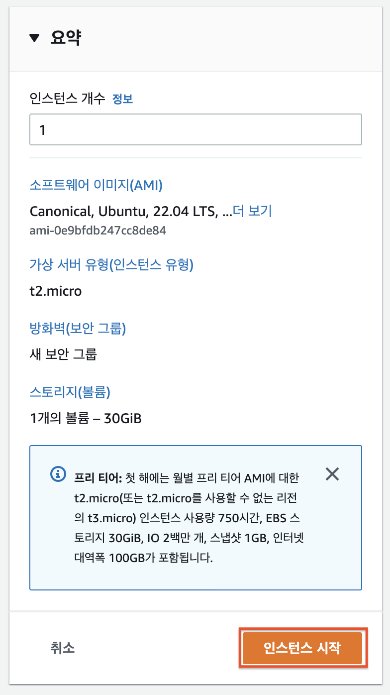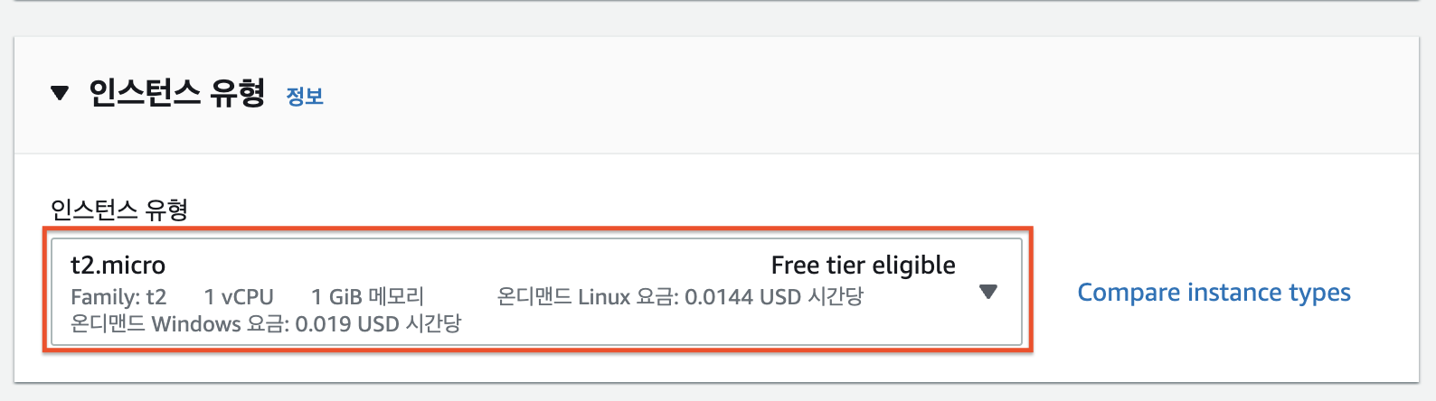 인스턴스 유형은 1년간 무료인 t2-micro 를 선택한다.