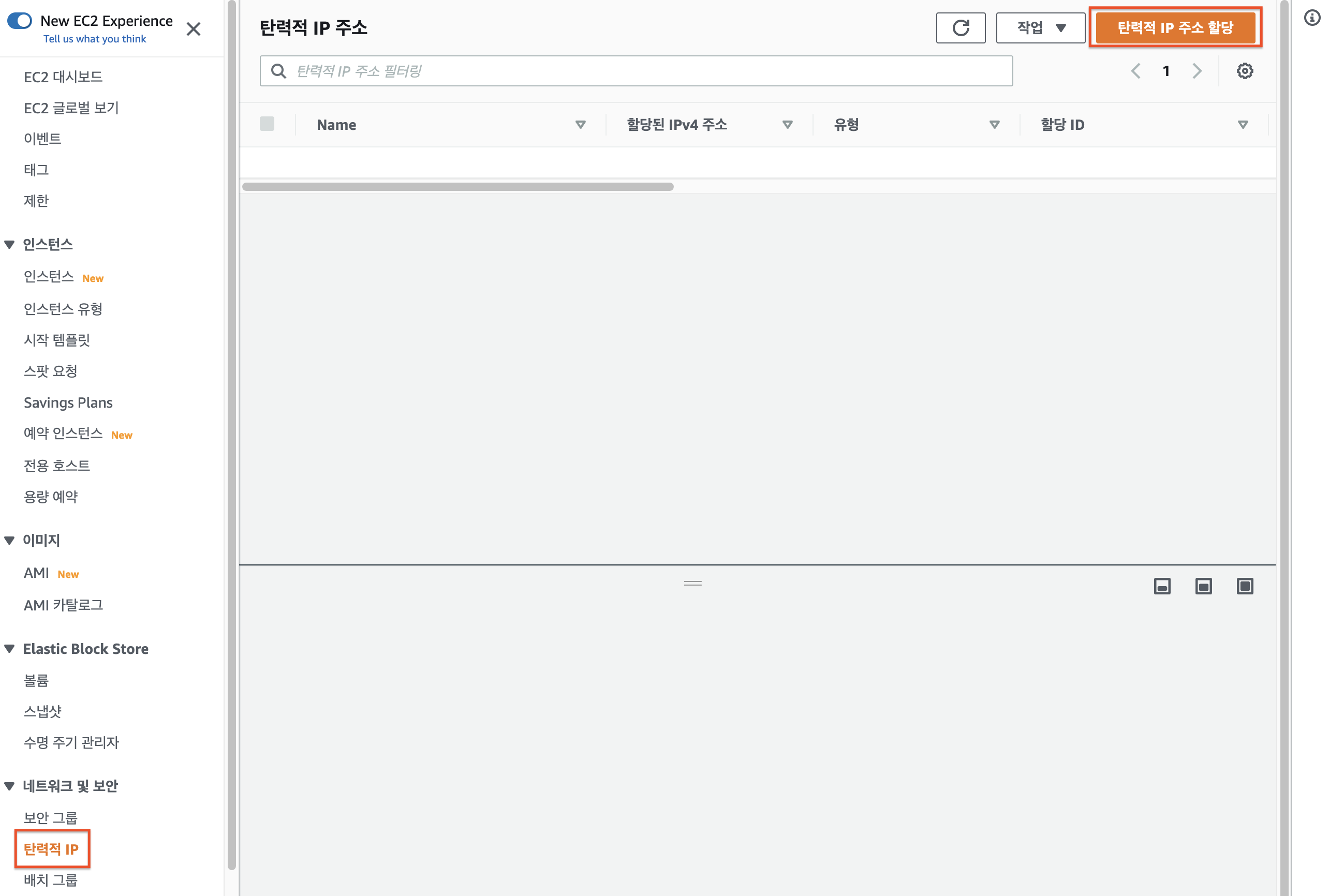 먼저 탄력적 IP를 추가한다. 생성된 IP가 앞으로 접속할 IP 라고 생각하면 된다.