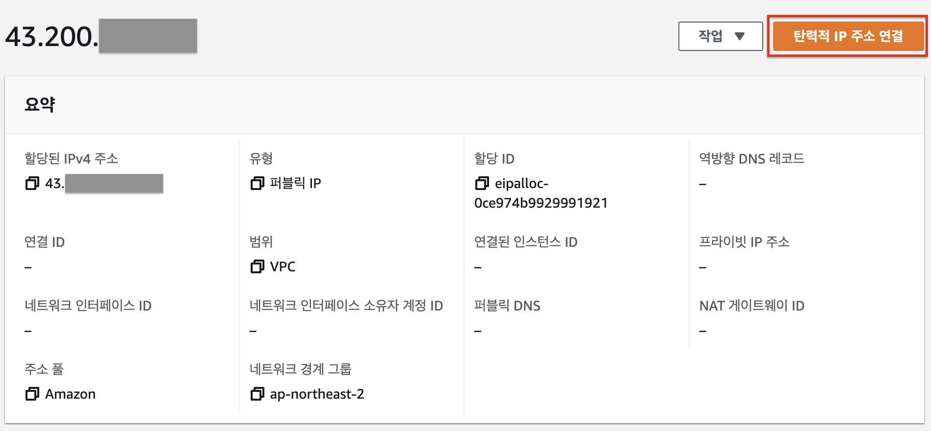 탄력적 IP를 생성된 instance와 연결 해준다.